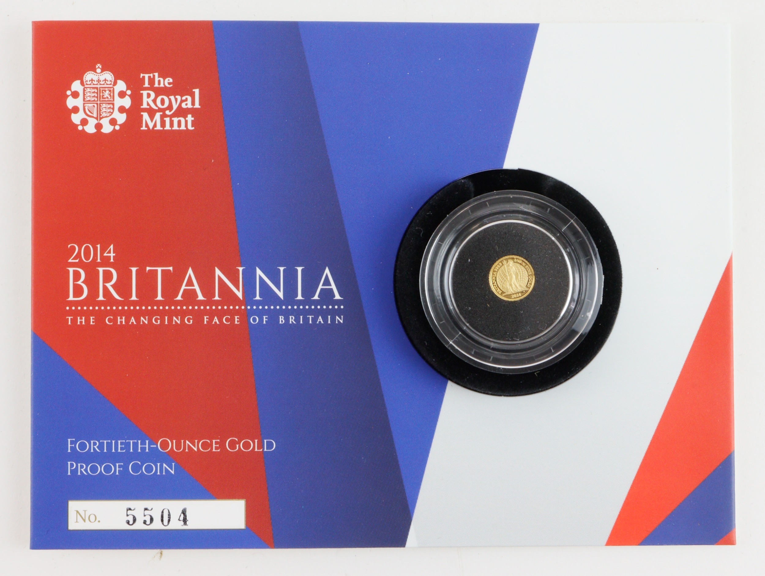 Britannia gold Fifty Pence 2014 (1/40th) Proof FDC in the Royal Mint card
