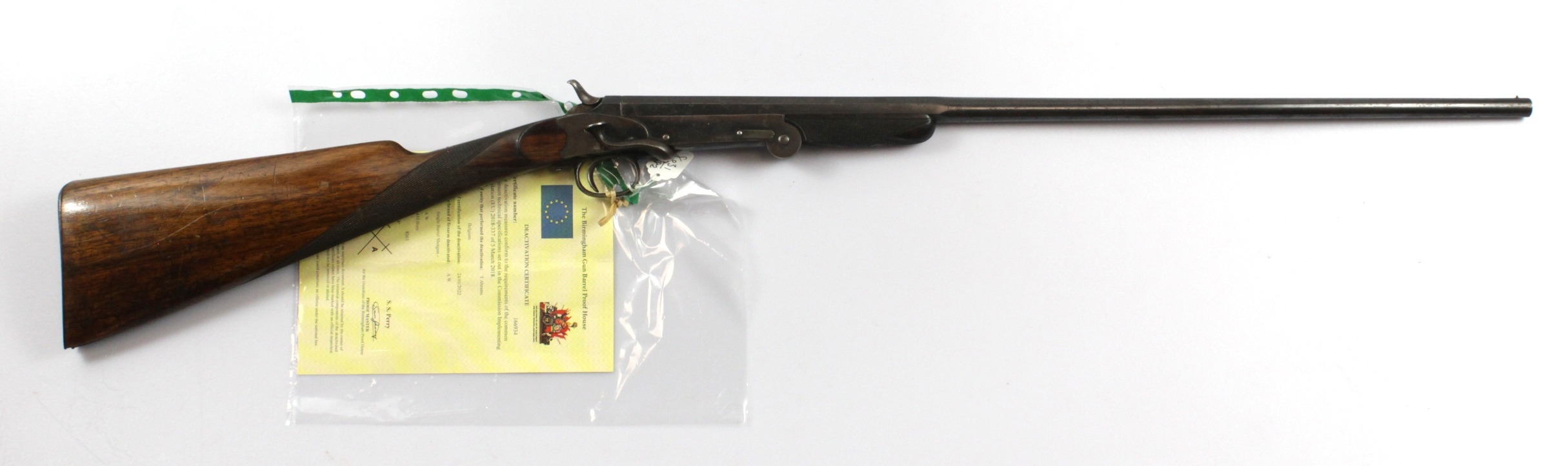 Belgium single barrel shotgun, calibre .410. Folds back on itself for concealement in an overcoat pocket. In good condition with fading blue. Circa 1900-1940's. With Current Certificate of Deactivation