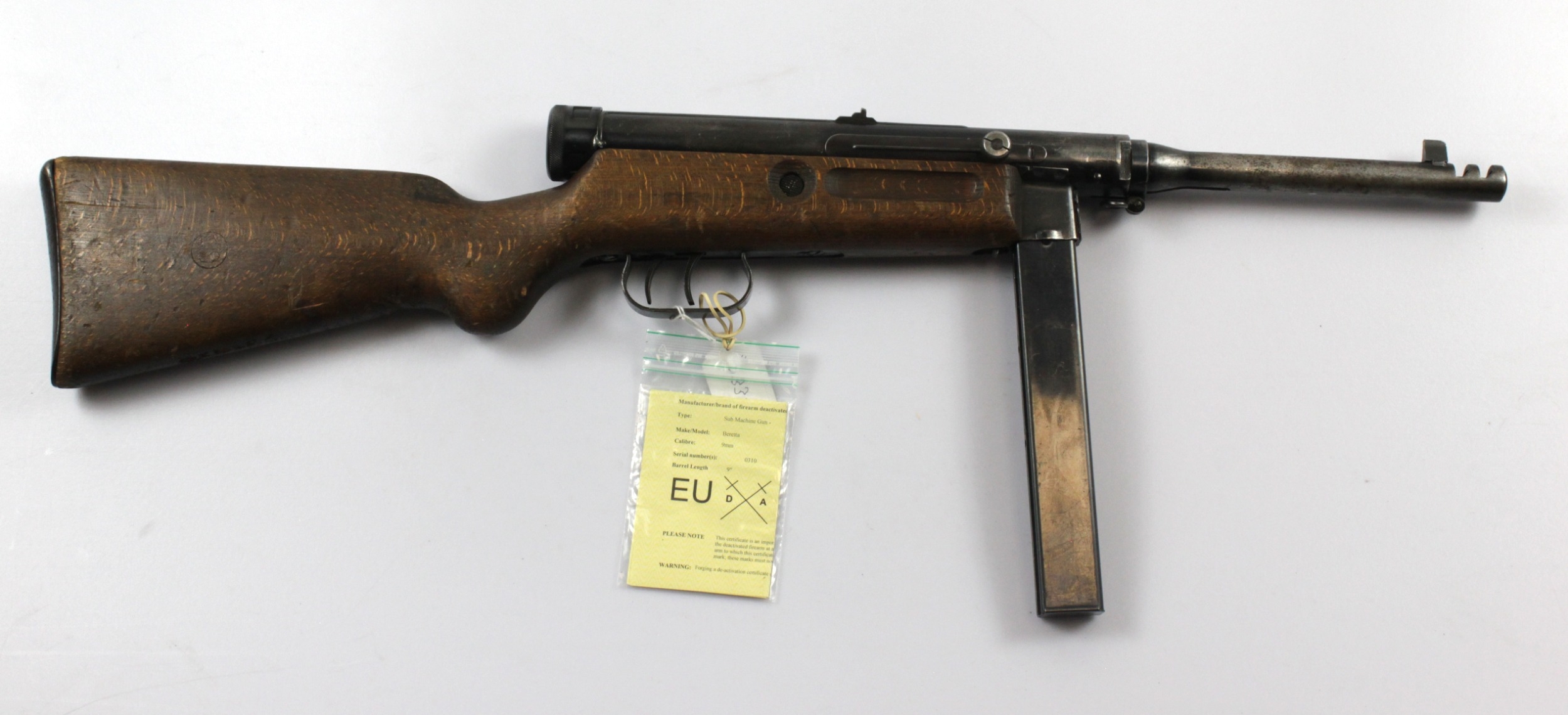 Deactivated Italian Beretta sub machine gun with EU deactivation certificate.