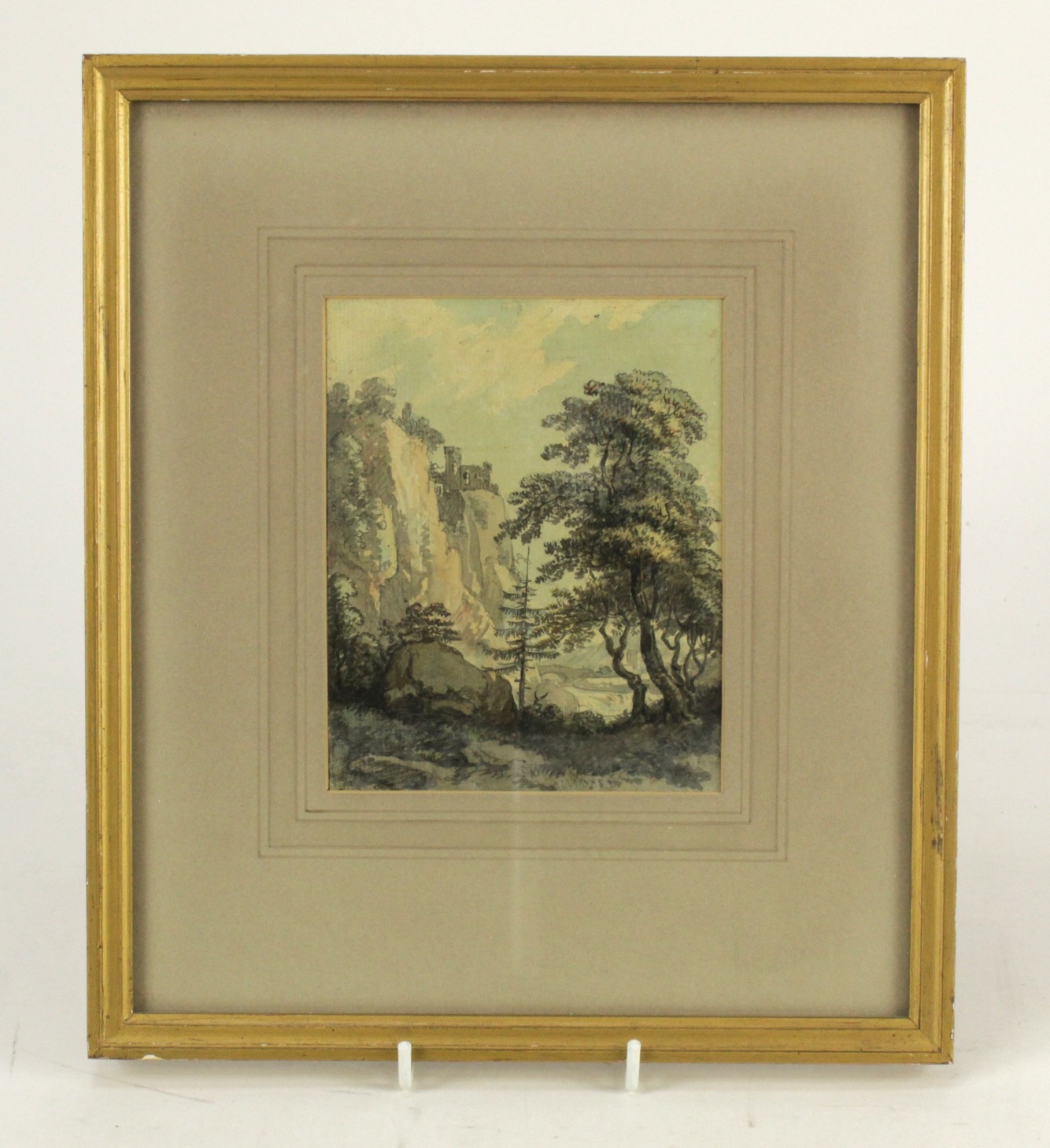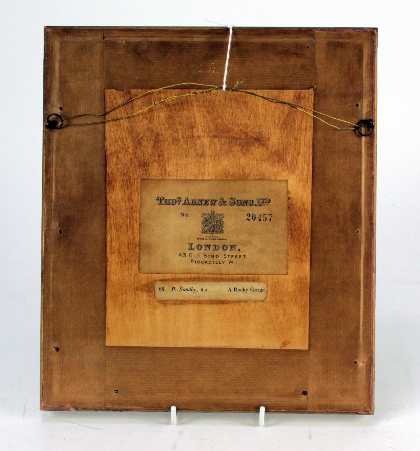Paul Sandby R.A. (1730-1809). Watercolour, titled 'A Rocky Gorge', contemporary paper labels to reverse 'Thomas Agnew & Sons Ltd, no. 20457', image size 11.5cm x 14.5cm approx., mounted, framed and glazed