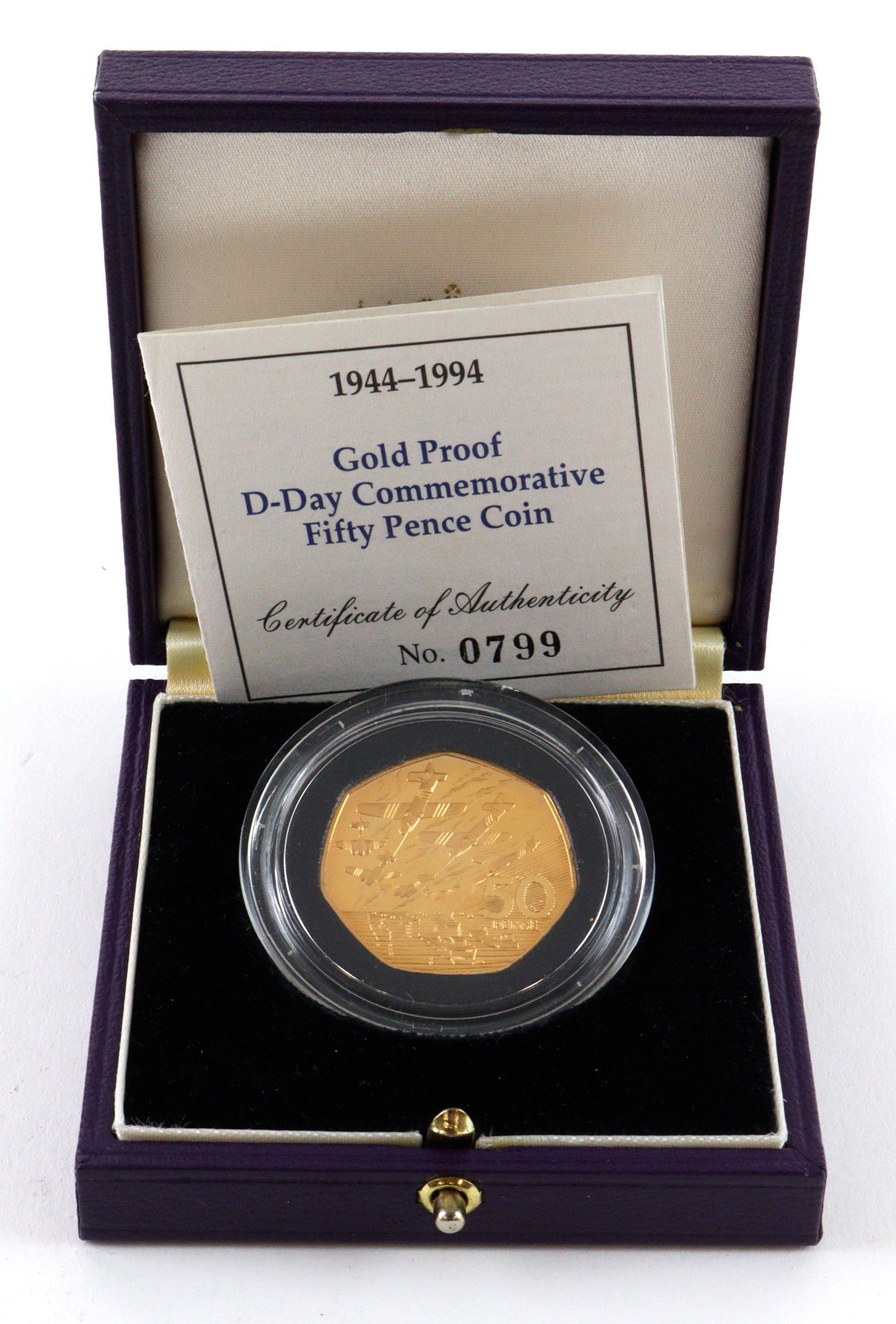 Fifty Pence 1994 "D-Day" gold proof. FDC boxed as issued