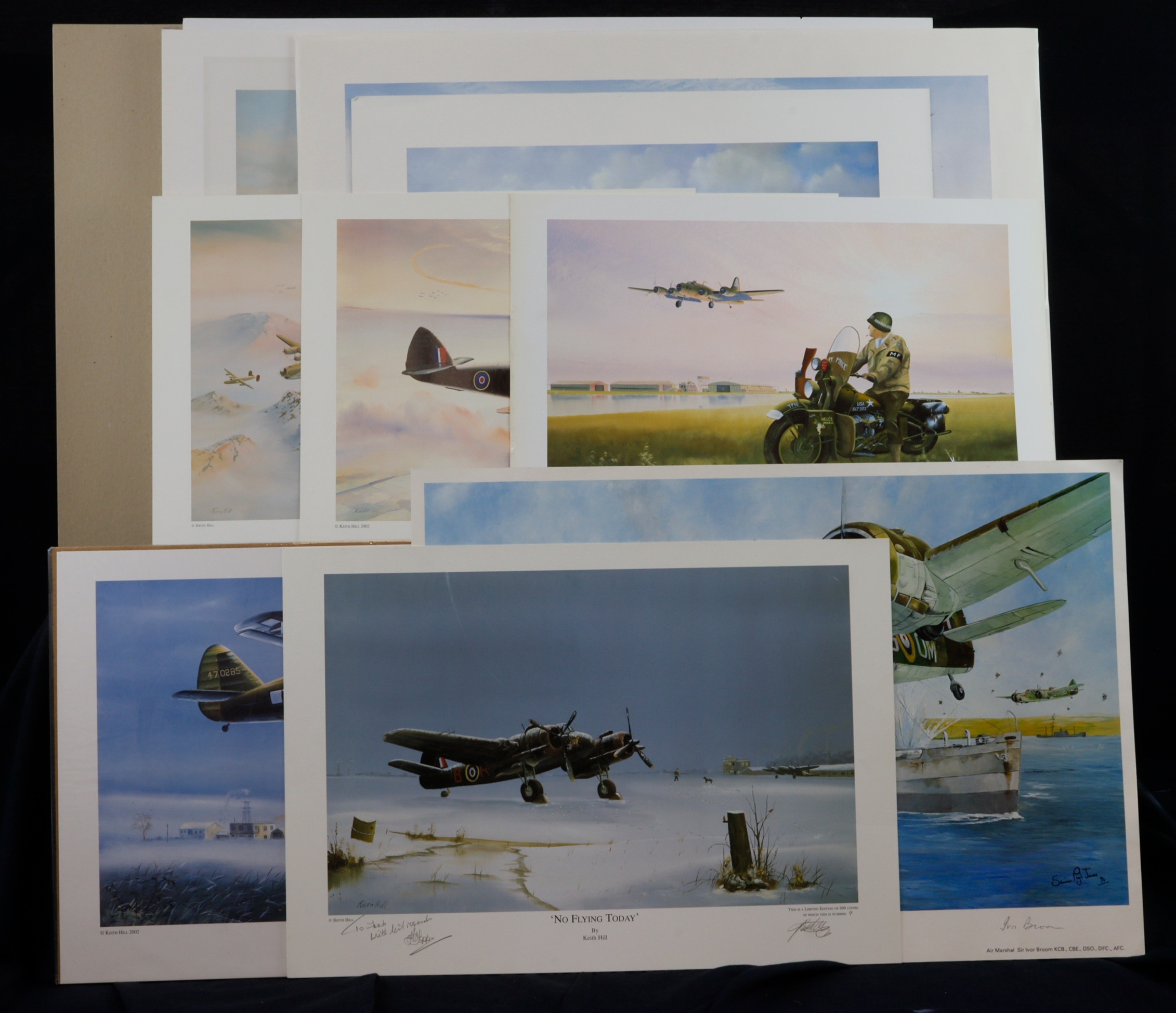 Aviation interest. A collection of approximately ten limited edition mostly Aviation related prints, many signed by various pilots, etc.,