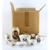 Crested China. A collection of approximately thirty pieces of crested china, souvenir pieces, etc. (including Military interest), items include plates, cups, etc., makers include Shelley, Royal Stafford, etc.