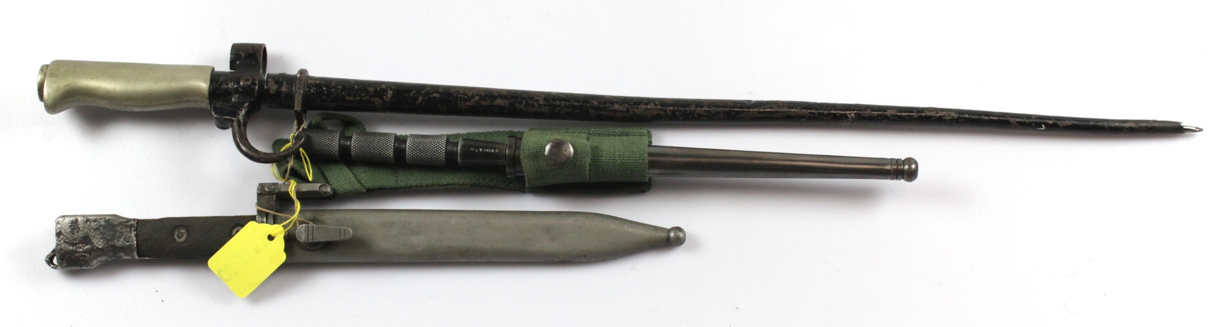 Bayonets, all with scabbards, incl French Lebel, and British Fighting Knife (3)