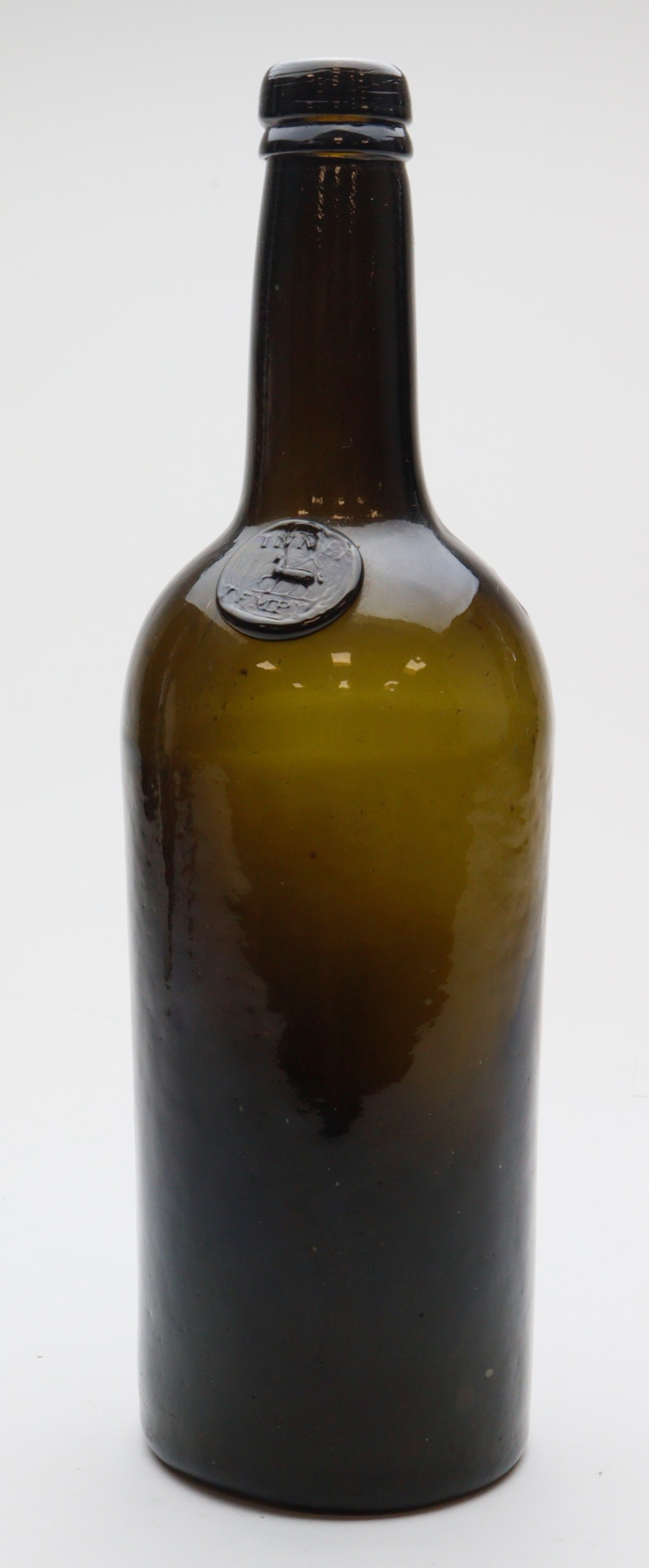 Honourable Society of the Middle Temple 19thC sealed wine bottle, applied seal reads "INN TEMPL" with a Paschal Lamb and Pennant in centre (cork in bottle)