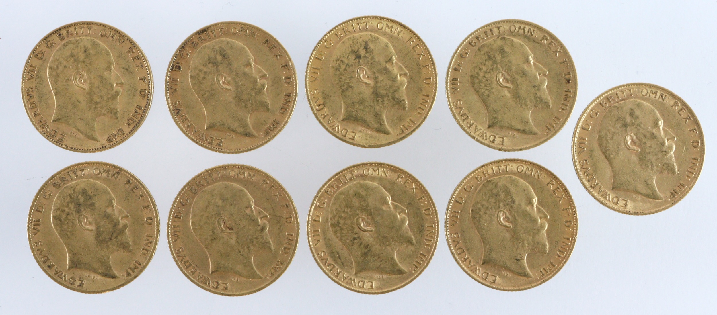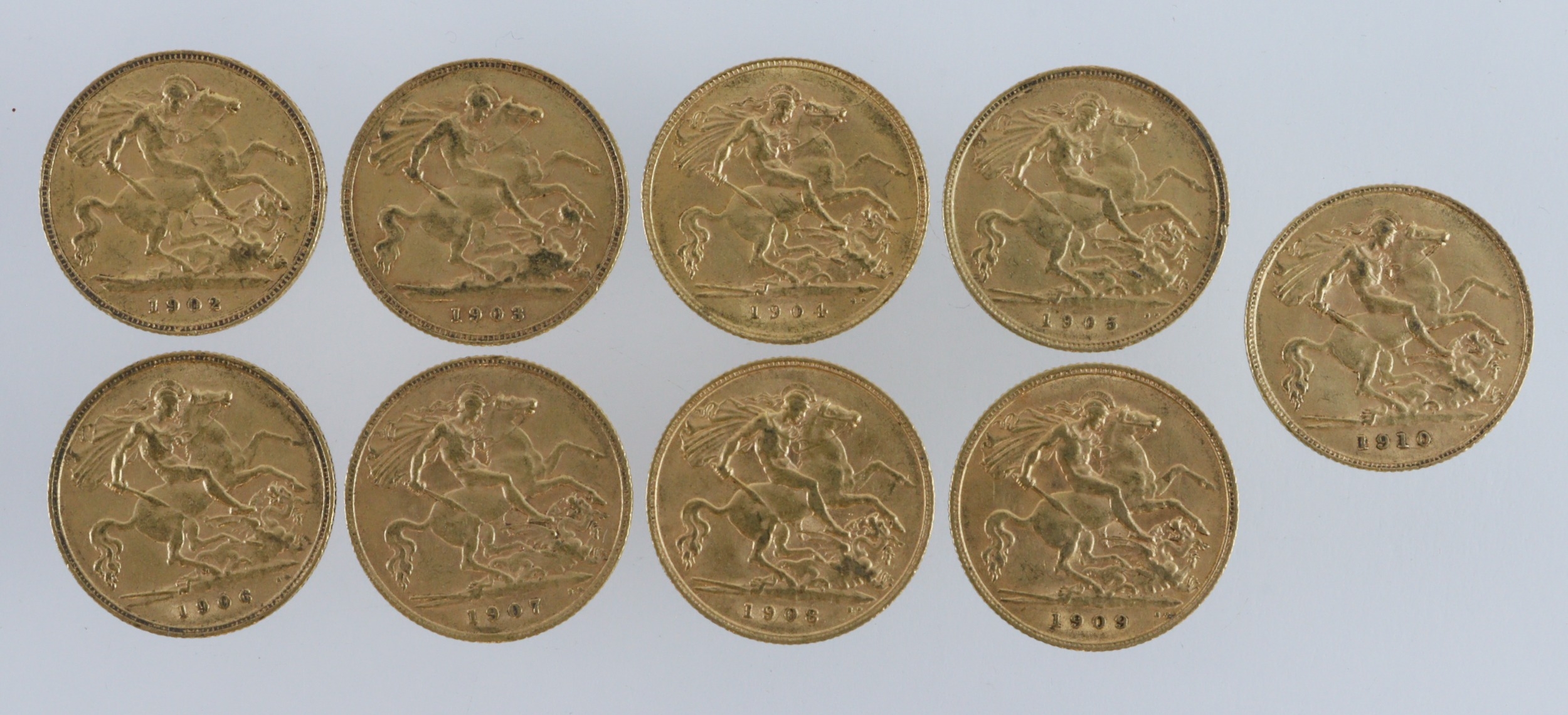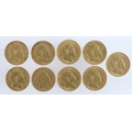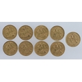 Half Sovereigns (10) a date run from 1902 - 1910. Average VF