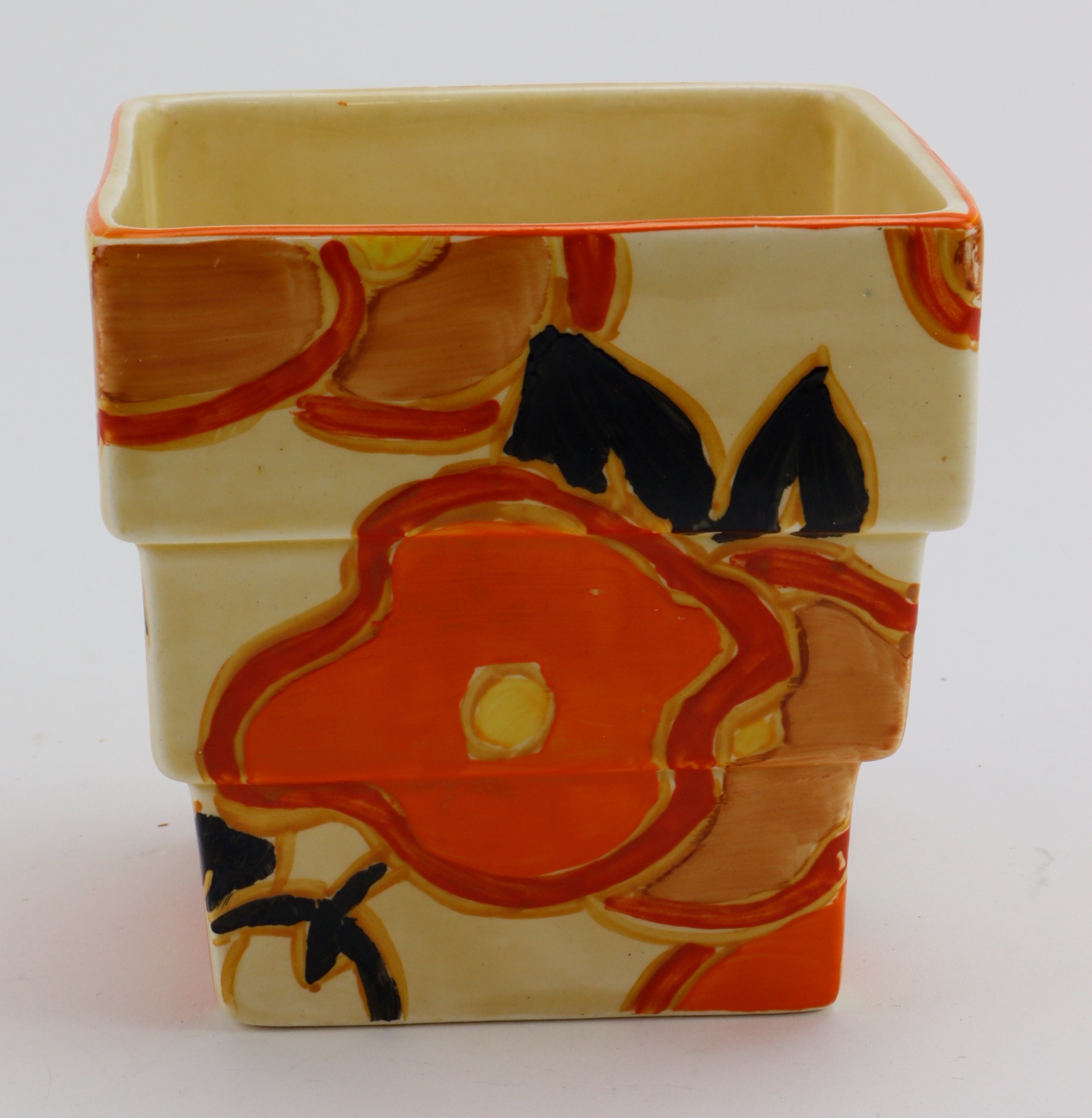 Clarice Cliff Bizarre 'Orange Chintz' pattern stepped vase (shape 368), makers marks to base, height 9cm, diameter 12.5cm approx.
